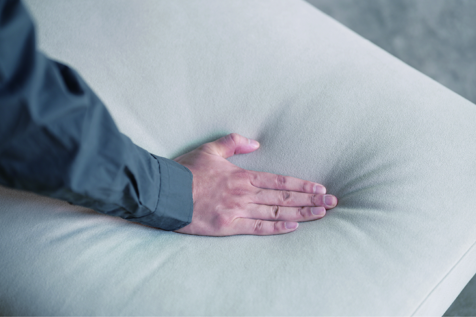 素材のブランド化を目的とした第1弾「FLOAT REST」は、MogyufilとPocket coil を組み合わせ、まるで浮遊するような体感を実現。優しい座り心地と美しい佇まいで、開放的なロースタイルの暮らしを提案します。