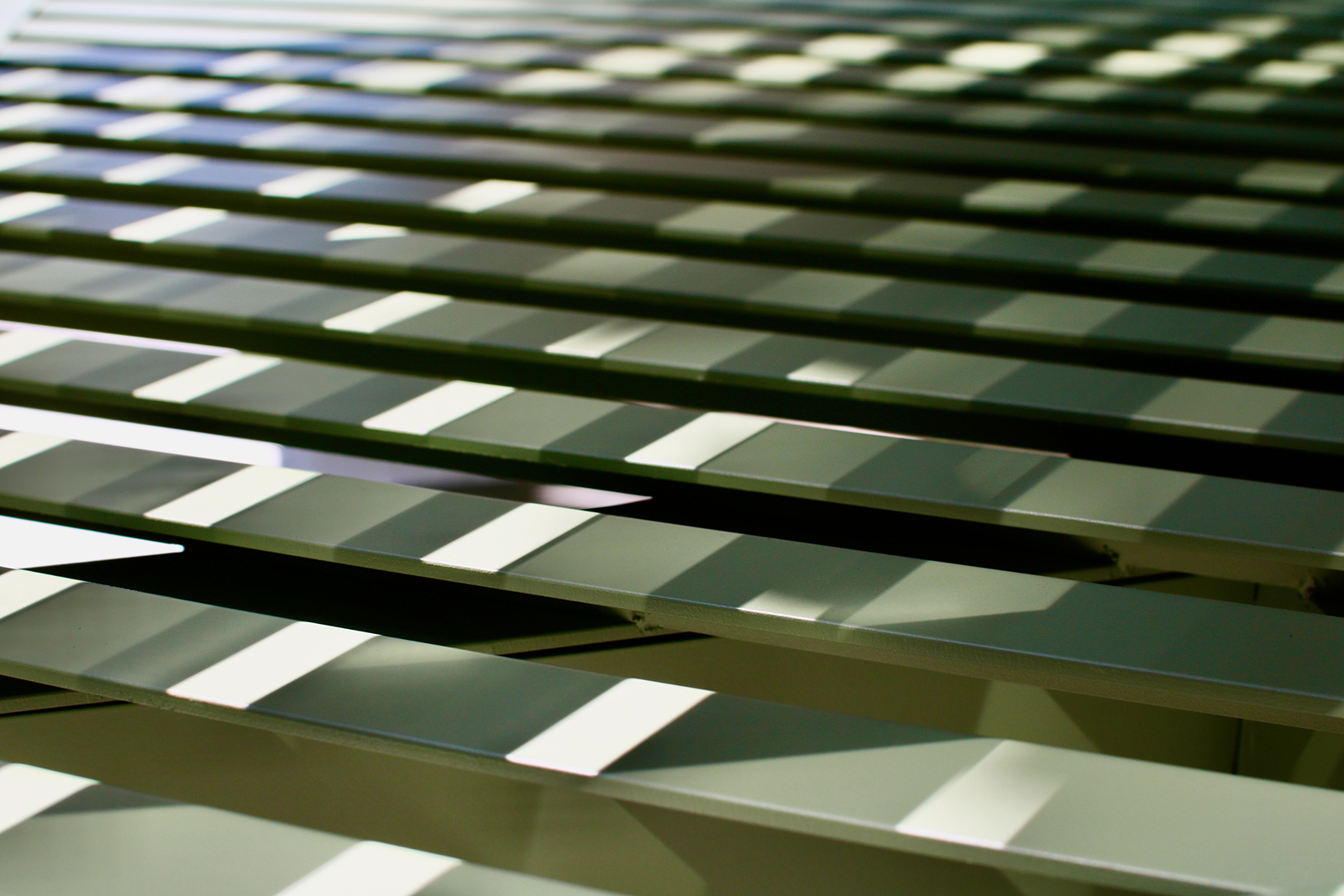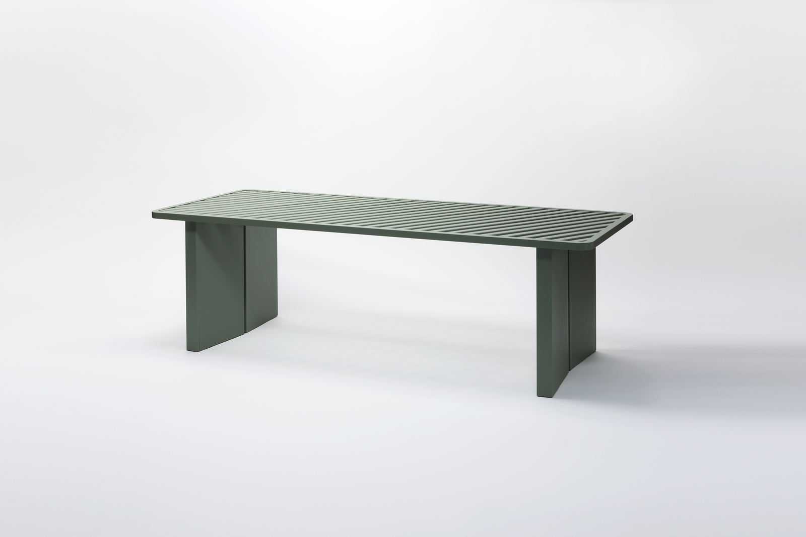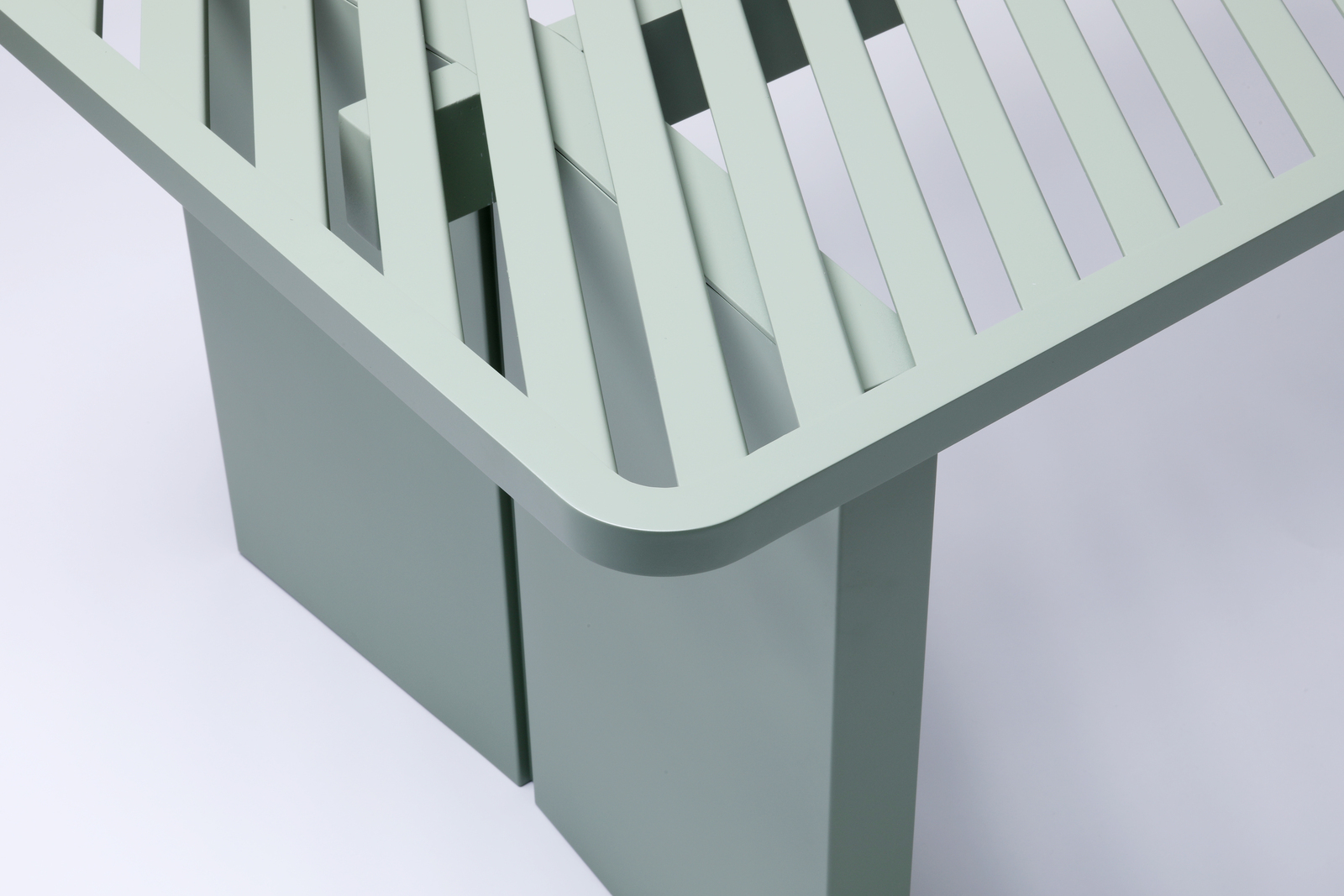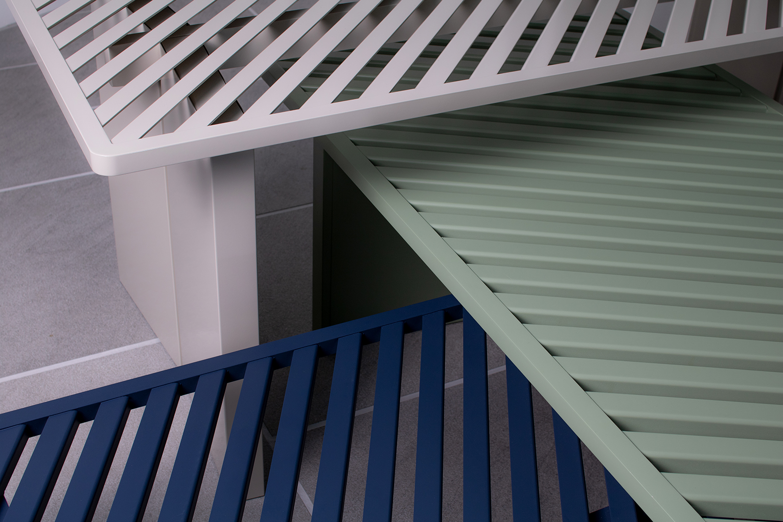 それぞれの家具の上面をL字断面の部材を並べて構成することで、見る角度や太陽の角度で様々な表情や陰影が生まれます。